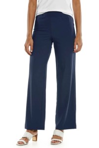 These days we’re traveling as much as we can. The nest is empty, the husband is retired – now is the time. Since we’re on the go so often, I’m trying to assemble things that are “go-to’s” for travel, and one of my strategies is to center my wardrobe around a single color (navy blue works for me). For summer, in particular, I’ve gravitated toward Coolibar pants and, specifically, the Petra and Verona styles in solid colors that will easily pair with multiple tops.