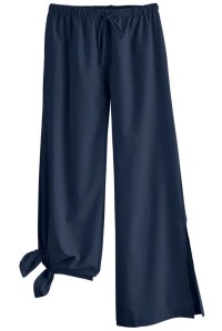 The Petra style is fun and attention-getting with a side slit to almost knee level, allowing the lower pants leg to flow prettily in the breeze (alternately, the loose ends may be tied at the ankle to vary the look). Verona is a straight-leg (but not skinny) style that is comfortable while looking dressy.